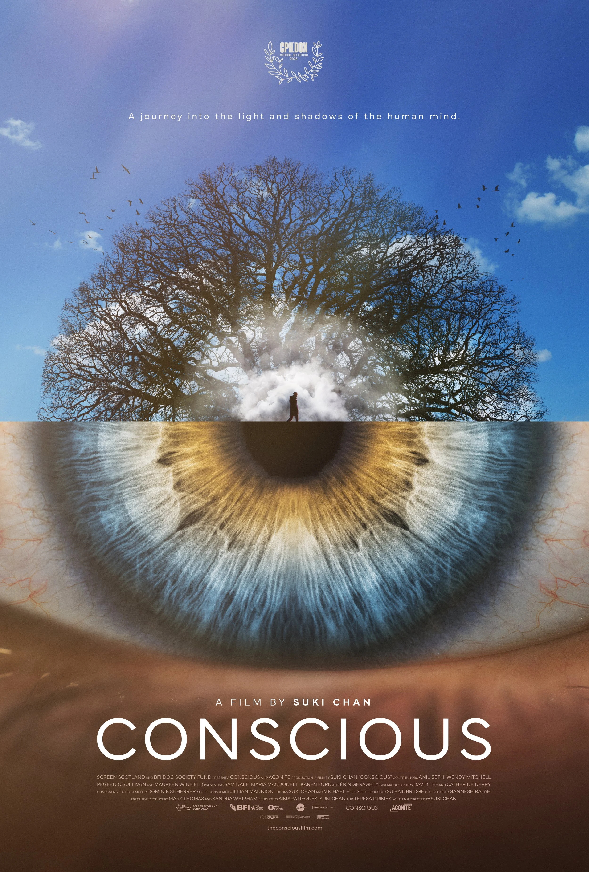 A beautiful and haunting exploration of what happens when consciousness and memory begin to disintegrate. Conscious narrates the stories of Wendy Mitchell, Pegeen O’Sullivan, and Maureen Winfield who navigate dementia in transformative ways. Mirroring their journeys is the work of neuroscientist Anil Seth who has dedicated his career to studying consciousness, and finds his professional and personal life intersect as science becomes personal. With striking visuals and a rich, textured soundscape, Conscious invites audiences inside these altered landscapes of awareness, asking: what remains of us when our internal landscape fragments?